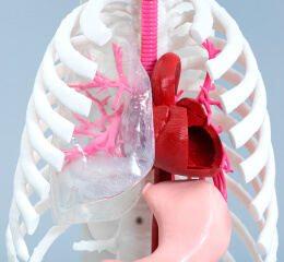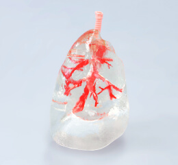 The bronchial model faithfully reproduces the bifurcation of the bronchi, allowing for both bronchoscopic examination and the use of therapeutic devices.