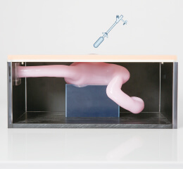 By clamping the duodenum with a special plug, simulations with liquids such as the sky blue method can be performed.