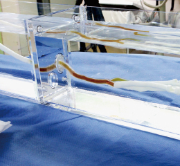 This is a peripheral vascular model that reproduces blood flow with a pulsating pump and allows angiography under X-ray fluoroscopy. Simulation of endovascular treatment such as stenting of lower limb vessels is possible.